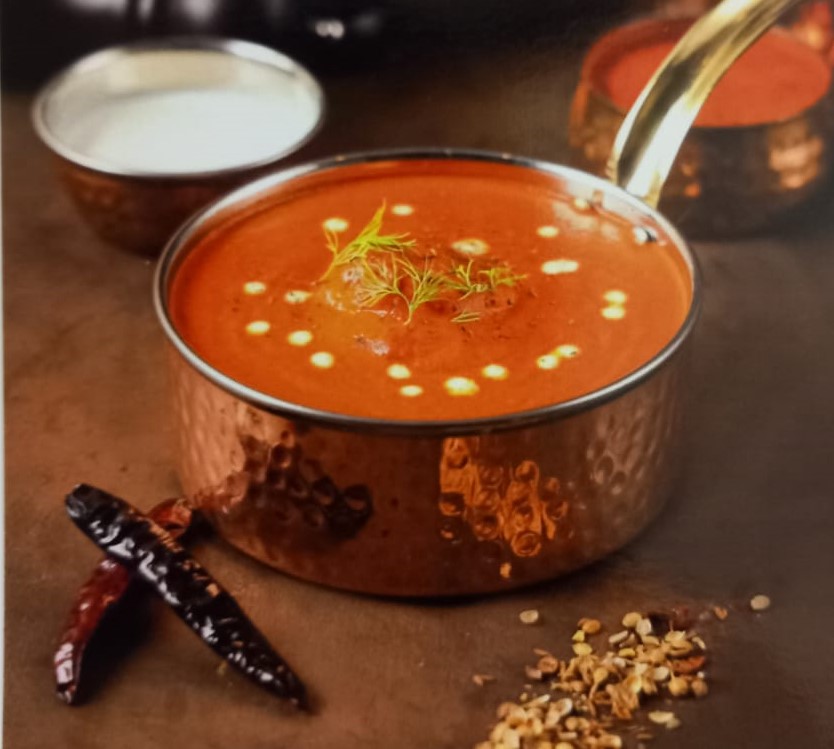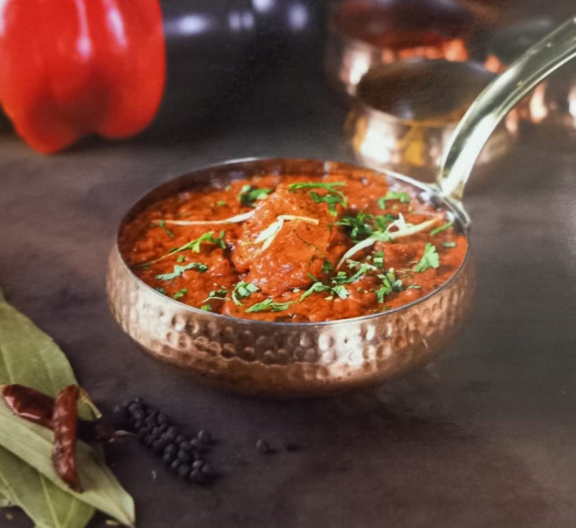 قطع دجاج مطبوخ في صلصة الطماطم والبصل مع توابل هندية