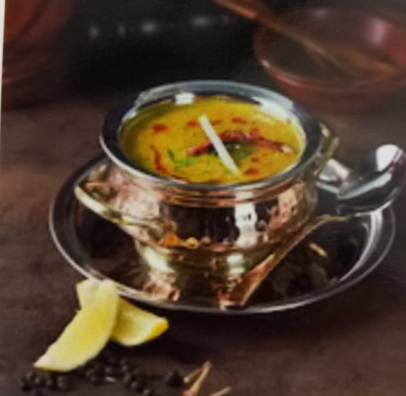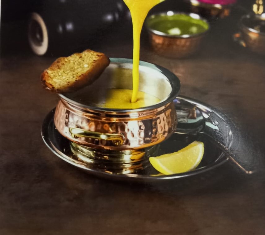 عدس اصفر مطبوخ مع البصل والطماطم والبهارات الهندية وال