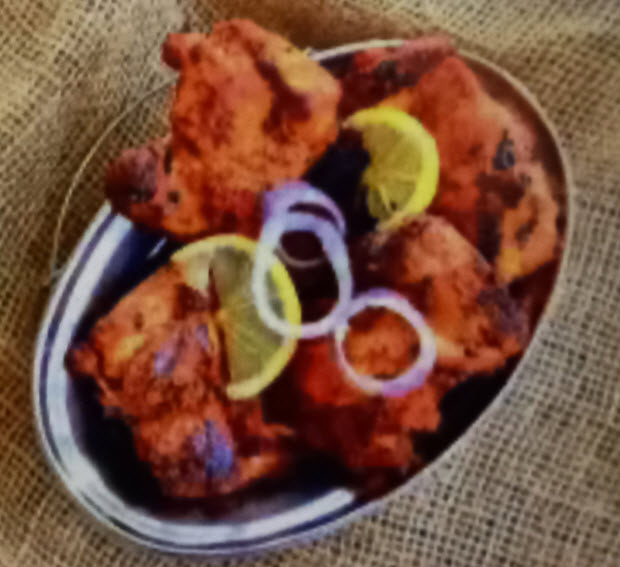 قطع الدجاج المشوية بفرن التندور مع ارز وتوابل هند
