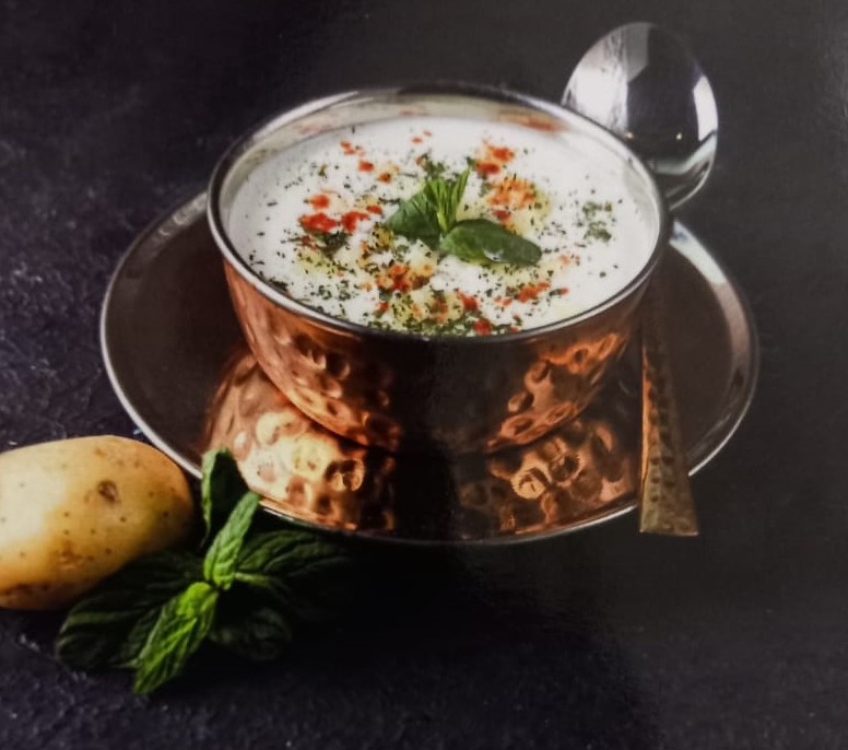 زبادي مبرد ومخفوق مع النعناع والبطاطس